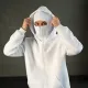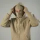 Men's Beige Full-Zip Balaclava Hoodie with Thumbholes